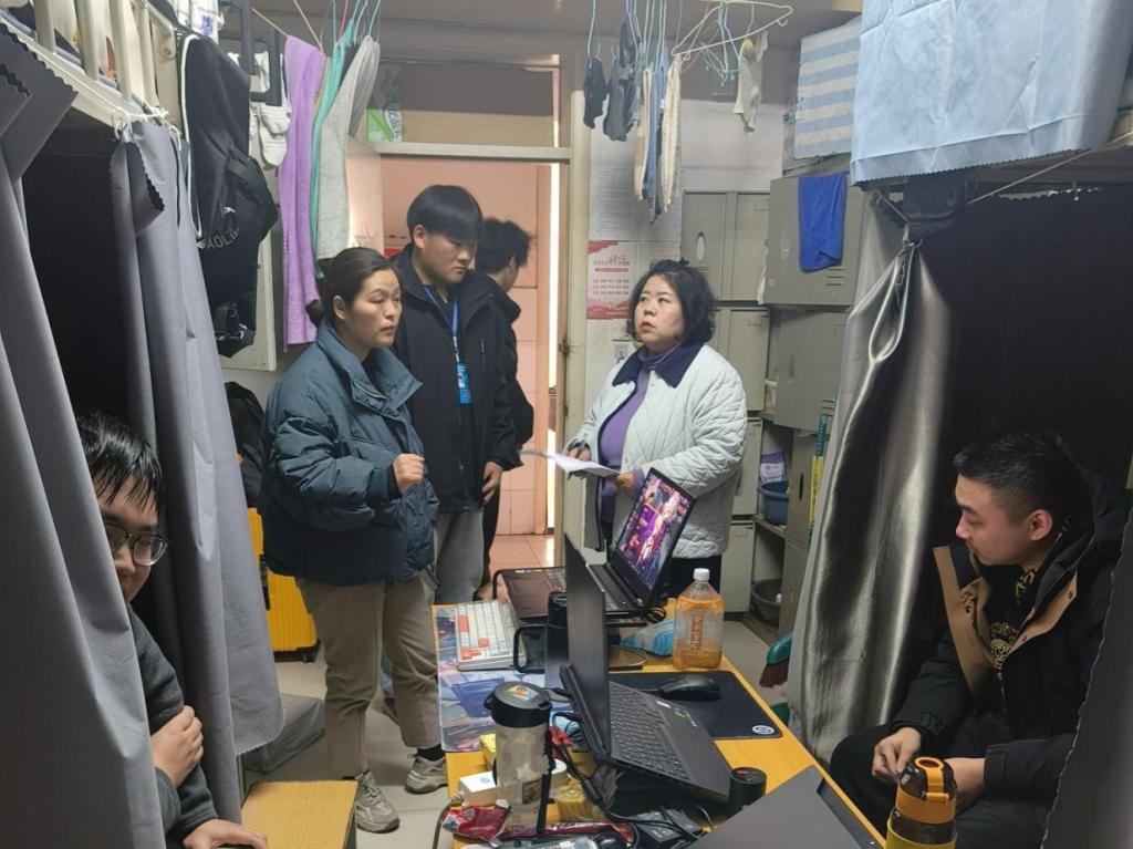 此次检查特别关注学生宿舍的用电安全、消防设施和疏散通道,确保每间宿舍都经过仔细检查,不遗漏任何潜在的风险隐患。检查人员认真寻找违规使用大功率电器、私拉乱接电线、存放易燃易爆物品等安全隐患。此外,他们还对宿舍内的灭火器、应急照明灯、疏散指示标志等消防设施进行了彻底检查,以确保其功能正常且处于良好状态。