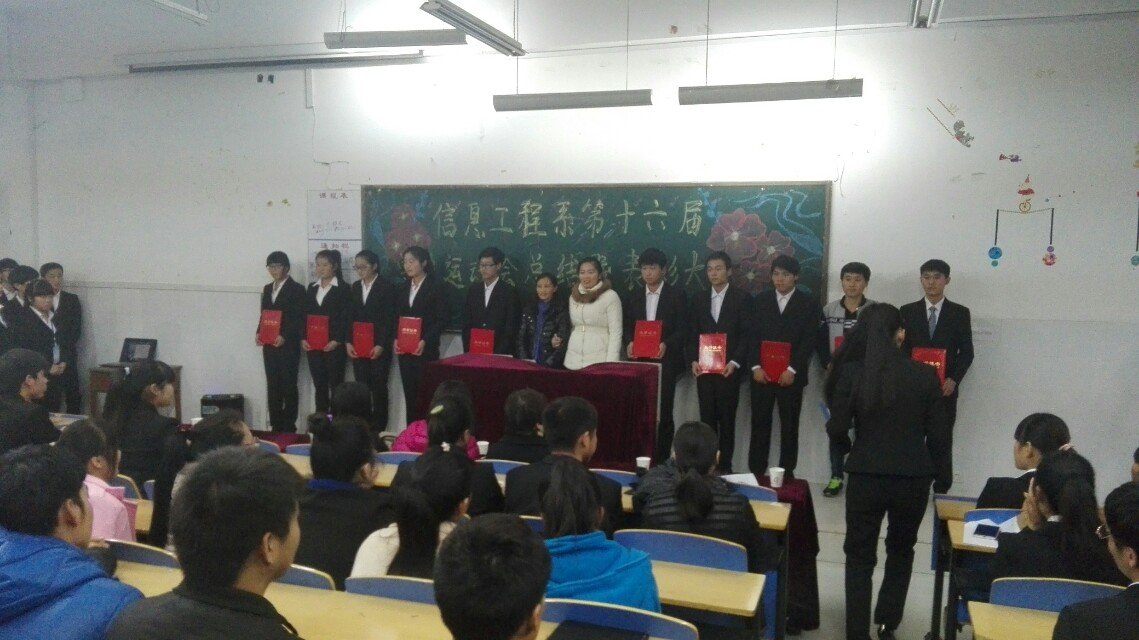 在此次表彰大会中,首先,我系师生观看了运动会的精彩视频,再次一睹同学们在赛场上的风采,也看到了运动员们的日常艰苦训练。其次,由我系团总支书记王平岗作重要讲话,赞扬了运动员、啦啦队、方块队的同学在运动场上的拼搏和不服输的精神,鼓励并希望同学们能继续发扬体育精神,争取在下届运动会中取得更好的成绩。团总支负责人樊佩佩激励同学们在日后的工作学习中继续加油并宣读了此次大会中的表彰人员名单。最后由出席的各位领导老师为表彰同学颁发了荣誉证书并合影留念。